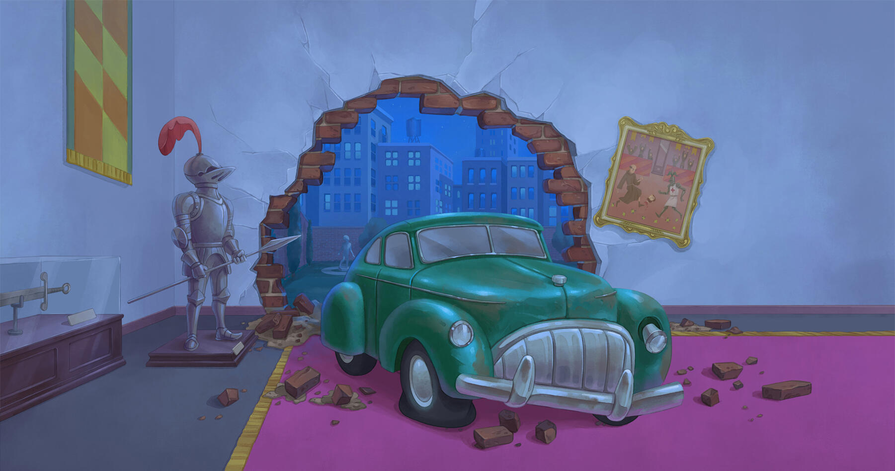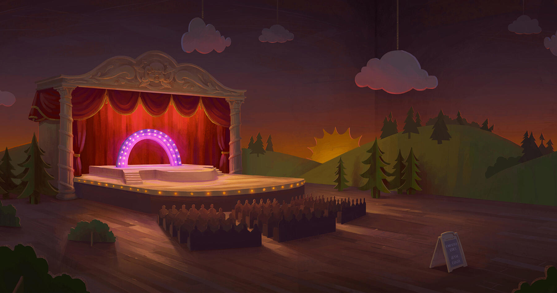 Background paintings for a Netflix interactive game. Painted digitally, but meant to look like traditional watercolor backgrounds from a 1950s Tex Avery cartoon. I did the paint only, the layout was created by another artist.